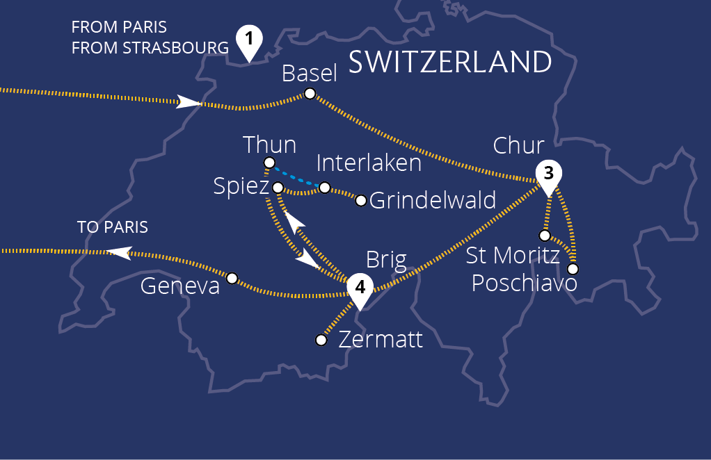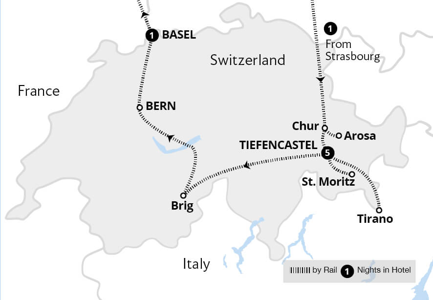 • Spend 8 nights in 4 star hotels, based in the traditional alpine towns of Chur and Brig