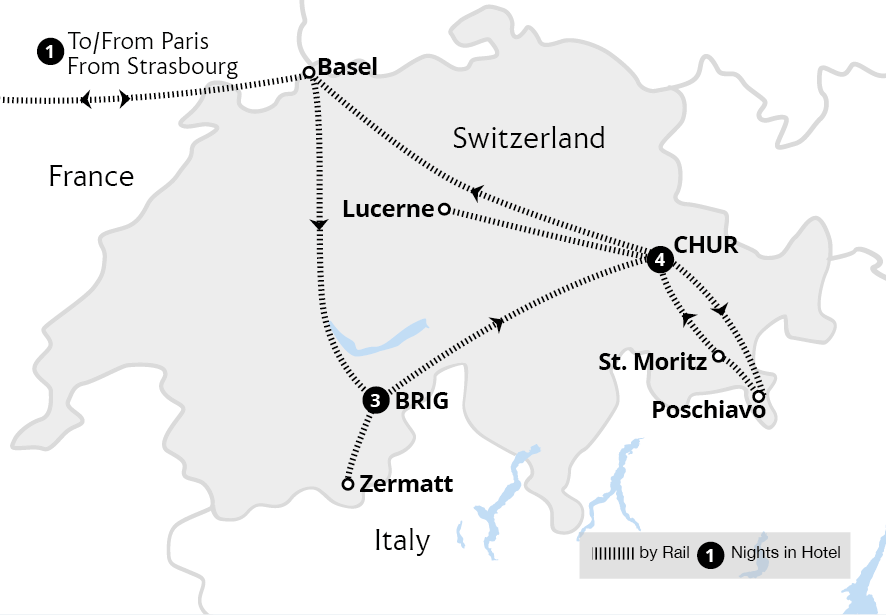 Snowbound views and seasonal scenery have made the Glacier Express famous at this time of year as the Swiss Alps' glistening peaks provide picture-postcard backdrops to an unforgettable journey. Enroute to Switzerland, visit Strasbourg's Christmas market and marvel at Matterhorn views from Zermatt, before travelling through the 'Swiss Grand...