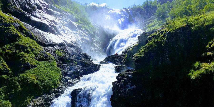 The journey pauses to marvel at the roaring cascade of Kjosfossen Waterfall, one of Norway's most breathtaking natural treasures, embodying the essence of Norway with raw natural power and stunning scenery. If you're lucky, you might even glimpse Huldra, the elusive forest spirit, dancing gracefully to a haunting local folk song.